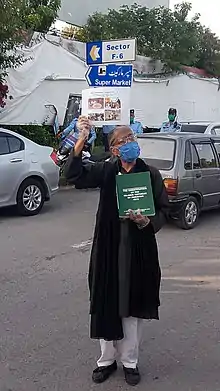 ![]() Tahira Abdullah protesting in front of National Press Club, Islamabad | |