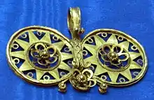 Taiganja are precious metal ornaments found in Central Sulawesi, Indonesia, especially in the Sigi Regency. They are used as a kind of jewelry to enhance the status of the wearer, or as protective amulets. The core shape of the taiganja, reminiscent of the female genitalia, is an endemic shape that has been found throughout the Southeast Asian region.