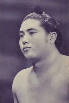 Kōki's birth name was Ivan Boryshko.[7] He was born on the island of Sakhalin (Karafuto Prefecture) to a Japanese mother Kiyo Naya[8] and an ethnic Ukrainian father Markiyan Boryshko[8] who had fled the Bolshevik Revolution.[9][10][11][12] However, he is regarded as having come from Teshikaga, Hokkaidō, where he moved to as a child after the Soviet Union took control of Sakhalin in 1945. While on a sumo tour to the Soviet Union in 1965 he tried to locate his father, but without success.[2] Taihō was the first of three great yokozuna who all hailed from Hokkaidō, the most northerly of the main islands of Japan and who among them dominated sumo during the 1960s, 1970s and 1980s. The others were Kitanoumi and Chiyonofuji.