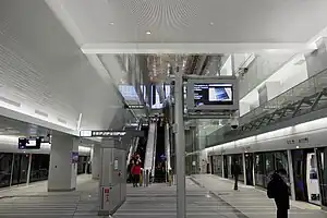 Taipei Main Station is the eastern terminus of the Taoyuan Airport MRT in Zhongzheng District, Taipei, Taiwan. Located roughly 250 metres (820 ft 3 in) west of Taipei railway station and 200 metres (656 ft 2 in) east of Beimen metro station, the station is connected to the Taipei railway station through a 115 metres (377 ft 4 in) long underground walkway,[1] and to Beimen station through another underground walkway. It is the busiest station of the Taoyuan Airport MRT.[2] The station is served by both express and commuter trains, and provides in-town check in services for outbound flights. Currently, four airlines offer this service.[3]