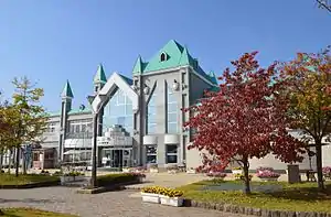 Takahata Station (高畠駅, Takahata-eki) is a junction railway station in the city of Takahata, Yamagata, Japan, operated by the East Japan Railway Company (JR East). It is unique in having an onsen hot spa on its premises.