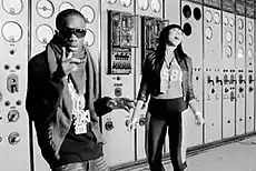 Tinchy Stryder and Bridget Kelly in a scene in the music video for "Take The World".