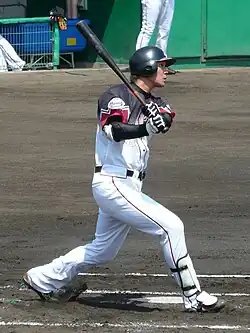Takumi Kobe (神戸 拓光, born February 23, 1985, in Ushiku, Ibaraki) is a Japanese former professional baseball outfielder who played from 2008 to 2013 with the Chiba Lotte Marines in Japan's Nippon Professional Baseball.