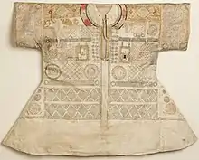 A talismanic shirt (or talisman shirt; Turkish: tılsımlı gömlek; Persian: پیراهن طلسمات, romanized: pirâhan telesmat) is a worn textile talisman. Talismanic shirts are found throughout the Muslim world. The shirts can be grouped to four types which differ in style and the symbols used: an Ottoman, a Safavid, a Mughal and a West African one.[1]