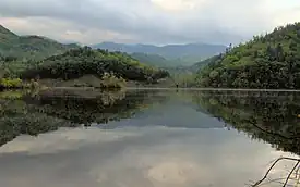 After winding from the mountains of Georgia into North Carolina, the Little Tennessee River passes through other mountains and crosses into Tennessee, where it flows for another 54 miles (87 km) before emptying into the Tennessee River near present-day Lenoir City. Chilhowee Dam, situated approximately 34 miles (55 km) above the mouth of the river, created a reservoir that spans the river for 10 miles (16 km) upriver, to the base of Calderwood Dam. The Tallassee site was located 41.5 miles (66.8 km) above the river's mouth, at the river's confluence with Tallassee Creek. According to 18th-century records, the town was situated on both banks of the river. Calderwood Dam is located just 2 miles (3.2 km) above the Tallassee site, opposite a U-shaped bend in the river.