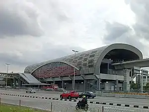 The extension of Sri Petaling Line was announced on 29 August 2006 by then Malaysian Deputy Prime Minister Mohd Najib Abdul Razak.[6] Then Prime Minister of Malaysia Tun Abdullah Badawi also confirm that the government was considering and researching the possibilities of the extension in his National Budget speech in 2006.[7] The station was originally planned to be built near the Puchong Fire and Rescue Station on the east side of LDP, however the current side was approved by the municipal in 2009.