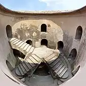 On the west side of Kenongo Island is another one-storeyed circular structure that forms another artificial island in the past called Gumuling Well (Sumur Gumuling). These one-storeyed building can only be entered via the underwater tunnel. The building was used as a mosque. A niche in the wall of this building was used as a mihrab. The central area of this building is an elevated platform where four staircases meet, and then from the platform, one staircase reach the first floor. On the ground level of this platform is a small pool that was used for Muslim ritual ablution.[9][10][20]