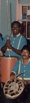 In Gaita zuliana music, from Venezuela, the tambora is a one-headed drum played with sticks. The player can sit on it or put it between his or her legs to perform rhythms on the instrument by hitting the head, the rim, or the body of the drum.