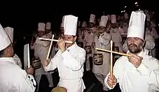 Tamborrada of Donostia (in Basque Donostiako Danborrada) is a celebratory drum festival held every year on January 20 in the city of San Sebastián, Spain. At midnight, in the Konstituzio Plaza in the "Alde Zaharra/Parte Vieja" (Old Town), the mayor raises the flag of San Sebastián. The festival lasts for 24 hours.[1] Participants, dressed as cooks and soldiers, march in companies across the city. The celebration ends at midnight, when people congregate at the Konstituzio Plaza and the city flag is simultaneously lowered at various locations.[2]