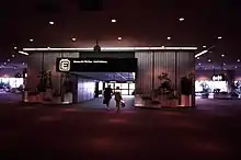 Airside F was added to the airport in 1987 along with an additional shuttle line. Airside F's shuttles included new second-generation C-100 vehicles, and it would be the first airside system to include two-car trains.[10] Airside F's shuttle station was built on the second level of the airside building (the same level as the passenger boarding jetways) unlike the original airsides, which had their shuttle stations on the third level (the same as the landside terminal). This was due to the improved technology of the second-generation C-100 vehicles, which could better handle inclines than the original vehicles and it eliminated the need for passengers to descend a level to access aircraft.[9] Every subsequent airside would have its shuttle station on the second level.