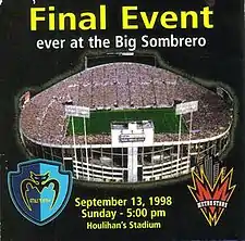 • Major League Soccer placed one of its original teams in Tampa in 1996. The Tampa Bay Mutiny were the stadium's fourth and final professional tenant. The Mutiny used the stadium as their home field for their first three seasons, and moved to Raymond James Stadium in 1999. They hosted the last sporting event at the stadium on September 13, 1998, when they defeated the New York MetroStars 2-1 in front of 27,957 people.[32]