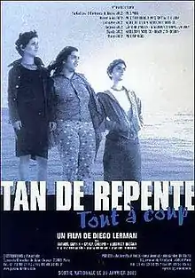 Tan de repente (Suddenly) is a 2002 Argentine and Dutch black-and-white comedy drama film directed by Diego Lerman and written by Lerman, María Meira, and Eloisa Solaas, based on the novel La prueba, written by César Aira. The drama features Tatiana Saphir, Carla Crespo, Veronica Hassan, among others.[1]