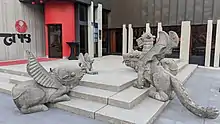 Sculptures at the entrance made by Bruno Weber