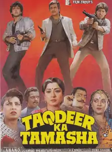 Taqdeer Ka Tamasha (transl.Farce of Fate) is a 1988 Hindi-language action film, produced and directed by Anand Gaekwad under the Film Group banner. It stars Jeetendra, Govinda, Aditya Pancholi, Moushumi Chatterjee, Kimi Katkar, Mandakini in the pivotal roles and music composed by Anand–Milind.[1]