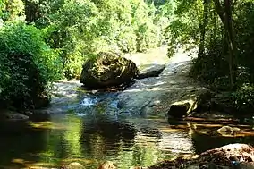 The Taquara Municipal Nature Park is in the municipality of Duque de Caxias, Rio de Janeiro The park has an area of 19.4 hectares (48 acres). It is at the foot of the Serra de Petrópolis.[1] It is in the Serra dos Órgãos between the Petrópolis Environmental Protection Area and the Tinguá Biological Reserve.[2] There is good infrastructure for visitors, including trails that lead past the Taquara River and the Cachoeira das Dores (Waterfall of Sorrows).[1]