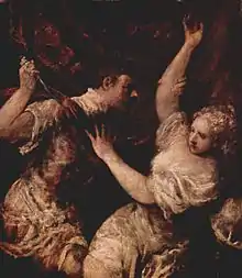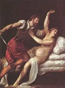 Tarquin and Lucretia is an oil painting by Titian completed in 1571, when the artist was in his eighties, for Philip II of Spain. It is signed, and considered to have been finished entirely by Titian himself. It is one of a series of great works from Titian's last years,[1] but unlike some of these, is fully finished. It is now in the Fitzwilliam Museum in Cambridge, England.[2]