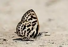 Tarucus waterstradti dharta, the Assam Pierrot, is a small butterfly found in India that belongs to the lycaenids or blues family.