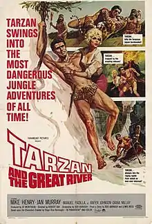 Tarzan and the Great River is a 1967 adventure film starring Mike Henry in his second of three film appearances as Tarzan.[1] The twenty-seventh and penultimate film of the Tarzan film series that began with 1932's Tarzan the Ape Man, the film was produced by Sy Weintraub and Steve Shagan, written by Bob Barbash (from a story by Barbash and Lewis Reed), and directed by Robert Day. Released on September 1, 1967,[2] it was followed by Tarzan and the Jungle Boy in 1968.