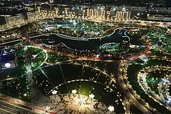 The area of the artificial reservoir in the center of the park is 15 hectares.[4] In the center of the lake there is a musical fountain 200 meters long. During the show, a stream of water is shot to a height of 80 meters.