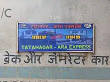 The Tatanagar–Ara Express is an Express train belonging to South Eastern Railway zone that runs between Tatanagar Junction and Ara Junction in India. It is currently being operated with 18183/18184 train numbers on daily basis.[1][2]