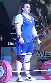 Tatiana Yuryevna Kashirina (Russian: Татьяна Юрьевна Каширина; born 24 January 1991) is a Russian Olympic weightlifter, Olympic silver medalist,[2][3] five time World Champion and eight time European Champion competing in the +90 kg and +75 kg categories until 2018 and +87 kg starting in 2018 after the International Weightlifting Federation reorganized the categories.[4] On 9 September 2023, the Court of Arbitration for Sport annulled over four years of her results due to drugs offenses, stating, "All the competitive results obtained by Tatiana Kashirina from 1 April 2013 until 19 June 2017 were disqualified, with all the resulting consequences, including the forfeiture of any titles, awards, medals, points and prize and appearance money."[5]