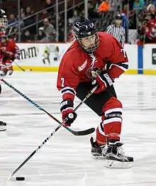After one year in Buffalo, she signed with the New York Riveters.[6][7] She would more than double her point production in the 2016–17 season, up to 7 points in 18 games. She stayed with the Riveters for the 2017–18 season, winning the Isobel Cup with the team.[8][9]