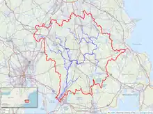 The total length of the river is 37.0 miles (59.5 km) from the junction of the Town and Matfield Rivers in Bridgewater to the mouth of the Quequechan River in Fall River.[1] It has a watershed of 562 square miles (1,456 km²). The river's watershed includes the Hockomock Swamp, the largest freshwater wetland in the state. The Taunton River is one of the flattest rivers in New England, dropping only about twenty feet (6 m) in elevation over its length.[2] The river is tidal as far north as Taunton.