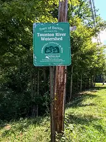 A sign in Berkley, MA indicates that "You are in the Taunton River Watershed"