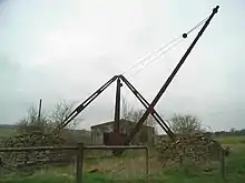 The navigability of the River Thames affected Taynton's ability to supply building stone. Originally the stone was taken 14 miles (23 km) overland to Eynsham before being loaded onto barges.[15] However, when Eton College was being built in the 15th century, navigation on the Upper Thames was so bad that stone was taken overland 40 miles (64 km) to river wharves at Henley-on-Thames.[17] In the 17th and 18th centuries the river was sometimes navigable upstream from Eynsham, so barges loaded the stone at Radcot, 12 miles (19 km) from Taynton.[23] Despite transport limitations in earlier centuries, products from Taynton sometimes included substantial monoliths. In the 17th century Robert Plot recorded that Sir Compton Reade had a stone mash tun made at Taynton that measured 6+3⁄8×3+3⁄8×4+1⁄2 feet (1.9×1.0×1.4 m) and held about 65 bushels[19] (about 2,400 litres). A team of 21 horses hauled it by road from Taynton to Shipton-under-Wychwood,[19] a distance of about 4 miles (6.4 km).