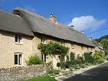 No. 16, or Strong's House, is a gable-fronted house with a date stone of 1676.[5] It was built for Thomas Strong, who was master mason to Sir Christopher Wren. It is a Grade II* listed building.[24] As well as the manor house and Strong's House, a number of other houses in the village date from the 17th century. No. 5 is much restored but in its garden are two gothic stone window frames that may be medieval.[5] The village school was built in 1877 and a post office had opened by 1895.[25] Neither remains open today.