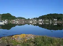 Tayvallich (pronounced TAY-vee-AL-ich; Scottish Gaelic: Taigh a' Bhealaich [t̪ʰɤj ə ˈvjal̪ˠɪç]) is a small village in the Knapdale area of Argyll and Bute, in Scotland. The village name has its origins in Gaelic, and means the "house of the pass".[1] The village is built around a sheltered harbour on Loch Sween. It has a primary school, caravan park, pub and village store. The local economy is based on tourism and fishing. There is also a local bus service that takes the older children to nearby Lochgilphead where the nearest high school is situated. Tayvallich has become a popular sailing centre. During the summer months a ferry (RIB) operates from Tayvallich to Craighouse, Jura, six days a week.[2]