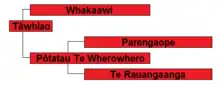 Te Rau-angaanga belonged to the senior chiefly line of Ngāti Mahuta. His father was Tuata, whose father was Tawhia-ki-te-rangi, whose father was Te Putu, the chief who lived at Taupiri on Taupiri mountain.[2] Te Rau-angaanga married Parengaope, daughter of a chief of Ngāti Koura, a hapū (subtribe) of Waikato.[1]