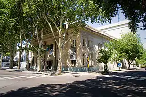 Supervised by the nation's Ministry of Public Works, the project was commissioned to architect Alfredo Israel, and its plans were approved in October 1923. The theatre was, as were many public works of this type in Argentina at the time, designed in a French Academy style. Its façade included a Neoclassical frontis featuring four Corinthian columns on a green marble base, a rococo frieze, the provincial escutcheon in bas-relief, and a balustrade above.[2]