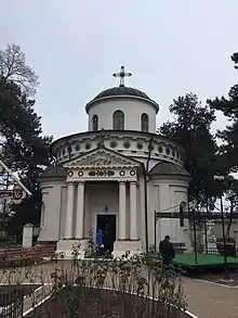 In the 18th century, according to the pisanie, Vistier (treasurer) Barbu Văcărescu established a church that stood on the circle in front of the present structure. The latter was built in 1833 by Grigore IV Ghica, the former Prince of Wallachia, and his son Grigore. After the completion of construction, supervised by a German architect, the church was sanctified by Grigorie III, Metropolitan of Ungro-Wallachia. It then became a chapel of the neighboring Ghica Tei Palace. Repairs took place in 1894. The dome collapsed during the 1940 earthquake and was rebuilt simply, without the original Neoclassical decorations. Significant repairs were also carried out following the 1977 earthquake.[1]
