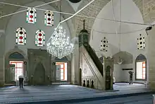 Built in the 17th century in the Kalekapisi district, the mosque is one of the most important Ottoman mosques in the city.[1] The main dome, which rises on a high rim, is supported by three semi domes, one each in the east, west, and south, as well as three domes on the northern side. There are tiled panels decorated with Koranic verses in taliq script on the pointed arch-formed lunettes of the windows on the northern façade of the mosque and inside it.