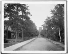 Blaker Street in 1910. The future site of the Christian Science Church is to the left, and visible at center is St. Paul's Episcopal Church
