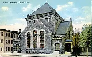Temple Israel is a Reform congregation located at 130 Riverside Drive in Dayton, Ohio. Formed in 1850, it incorporated as "Kehillah Kodesh B'nai Yeshurun" in 1854.[2] After meeting in rented quarters, the congregation purchased its first synagogue building, a former Baptist church at 4th and Jefferson, in 1863. Strongly influenced by Rabbi Isaac Mayer Wise, it rapidly modernized its services, and, in 1873, was a founding member of the Union for Reform Judaism.[1]