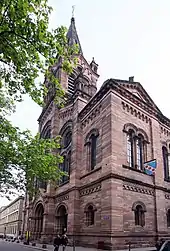The Temple Neuf in Strasbourg is a Lutheran church built on the site of the former Dominican convent where Meister Eckhart studied. The Temple was constructed at the end of the 19th century after the old Dominican Church was destroyed during the Siege of Strasbourg on the night of 24 to 25 August, during the Franco-Prussian War. The ensuing fire also destroyed the libraries of the University of Strasbourg and the City of Strasbourg which were located at the Temple Neuf site.[1]