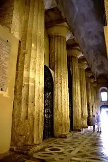 The Temple of Athena is a hexastyle peripteral Doric temple built in Syracuse, Magna Graecia, in the 5th century BC by the tyrant Gelo after his victory over the Carthaginians at the Battle of Himera.[1] The temple was preceded by a cult site which dated back to the 8th century BC, with an altar discovered in excavation at the beginning of the twentieth century, and by an earlier temple from the middle of the sixth century BC.