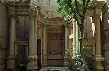 The Temple of Baalshamin was an ancient temple in the city of Palmyra, Syria, dedicated to the Canaanite sky deity Baalshamin. The temple's earliest phase dates to the late 2nd century BC;[1] its altar was built in 115 AD,[2] and the temple was substantially rebuilt in 131 AD. The temple would have been closed during the persecution of pagans in the late Roman Empire in a campaign against the temples of the East made by Maternus Cynegius, Praetorian Prefect of Oriens, between 25 May 385 to 19 March 388.[3] With the spreading of Christianity in the region in the 5th century AD, the temple was converted to a church.[4]