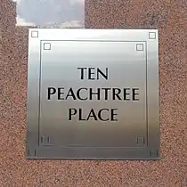 Ten Peachtree Place is a high-rise class A office building in midtown Atlanta, Georgia. The building was designed by Michael Graves and completed in 1989. It currently serves as the headquarters for Southern Company Gas. The building is notable for its 30-foot-high arch and red granite exterior that contrasts with the building's dark windows.[4][5]