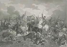 The Republic's strategic interest in the Ems River valley was reinforced during the stadtholders' large offensive of 1597. Albert's Spanish army of 4,600 attempted to surprise Tholen but Maurice's Anglo-Dutch army beat them to it and defeated them at Turnhout in a rare pitched battle in January.[36] Following this he seized the fortress of Rheinberg, a strategic Rhine crossing, and subsequently Groenlo, Oldenzaal and Enschede, before capturing the county of Lingen.[37] Maurice then went on the offensive seized the fortress of Rheinberg, another Rhine crossing, and subsequently Groenlo, Oldenzaal and Enschede fell into his hands. He then crossed into Germany and captured Lingen, and the county of the same name. This reinforced Dutch hegemony in the Ems valley. Capture of these cities secured for a while the dominance of the Dutch over eastern Overijssel and Gelderland, which had hitherto been firmly in Spanish hands.[37]
