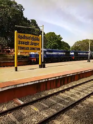 Tenkasi Junction railway station is a junction railway station serving the town of Tenkasi in the Indian state of Tamil Nadu. The station is a part of the Madurai railway division of the Southern Railway zone. It is the junction point for Virudhunagar and Tirunelveli rail routes.[2]