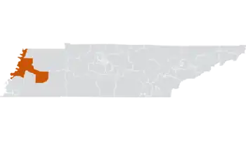 The district is located entirely within Tennessee's 8th congressional district, and overlaps with the 73rd, 77th, 80th, and 82nd districts of the Tennessee House of Representatives.[4] It borders the states of Kentucky, Missouri, and Arkansas.[1]
