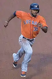 On August 12, 2016, the Astros promoted Hernández to the major leagues[6] and he made his debut as the starting center fielder against the Toronto Blue Jays that day, recording two hits in four at-bats. His first big league hit was a homerun off of Francisco Liriano in the sixth inning.[7] He remained with the Astros through the end of the 2016 season, and hit .230 with four home runs and 11 RBI in 41 games.[8] In the minors that year, hez batted .307 in 107 games, with 10 home runs, 53 RBI, and 34 stolen bases.[2]