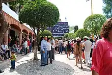 The town is home to a number of important legends.[1] As it is a tourist town there is a trolley-replica bus to take visitors around the various landmarks. These landmarks include places where Tequisquiapan's legends are set and on weekends and holidays, actors in period costumes re-enact these stories.[2][7]
