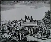 During the Siege of Middelburg from 1572 to 1574, Ter Hooge Castle was severely damaged. On 20 April 1572 it was occupied by Willem Bloys van Treslong, and Adriaen's oldest son Jan van der Hooge (1522-c. 1573) had to flee to Brabant.[9] After the siege the castle was restored.