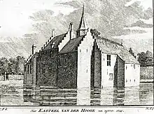 Pieter's son Philips (c. 1586-1662) started to call himself Van Borssele van der Hooghe.[7] His son Pieter van Borssele van der Hooghe died in 1666. The last Van Borssele van der Hooghe that owned the castle, was Philips Joseph, born there in 1669. The Van Borssele van der Hooghe branch founded by Adriaen's oldest son Jan remained Catholic, and was therefore effectively banned from office in Zeeland. Philips Joseph left Zeeland for the Spanish Netherlands.[8]