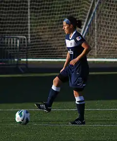 In 2013, she joined Seattle Reign FC as part of the NWSL Player Allocation for the inaugural season of the National Women's Soccer League.[11][12] Noyola scored her first goal for the Reign during a match against the Washington Spirit on 16 May 2013. After a solid cross from Christine Nairn, Noyola headed it in between two defenders and past the Spirit goalkeeper.[13][14] Noyola made 11 appearances for the Reign with eight starts. She scored one goal and served one assist before being traded mid-season to FC Kansas City.