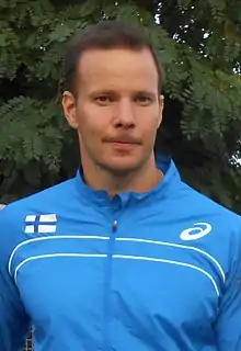 Tero Kristian Pitkämäki (born 19 December 1982) is a Finnish retired track and field athlete who competed in the javelin throw. He is a World Champion, having won gold in 2007. His personal best throw of 91.53 m, set in 2005, ranks him eleventh on the overall list.[1][2]